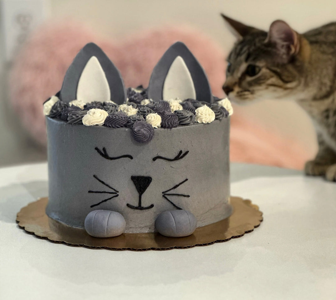 You can bring in food and drinks to enjoy in the kitty lounge during your visit. The adorable cake pictured below is from The Pursuit of Pastry, a local, woman-owned business.